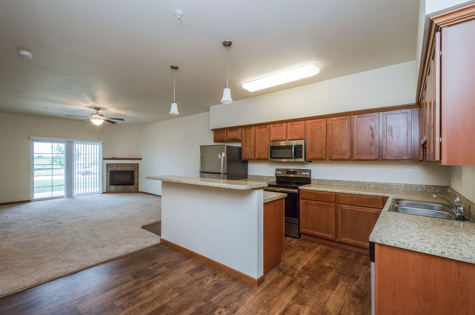 Brand new stylish 1 Bed/1Bath condo! You will love the nice open floor plan that this condo offers. Kitchen has a large kitchen island/breakfast bar and a ton of counter and storage space!! Bedroom is very spacious and delivers a nice walk in closet. Washer/Dryer in every unit. Fireplace, large deck and underground parking are also included. Located on the new addition off of Oakdale Blvd. This is a pet friendly building with approval and a $500 pet deposit.